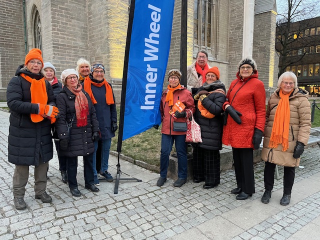 Representanter för vår IWklubb Örebro står centralt utanför Nikolaikyrkan den 25 November Orange Day.Det är den internationella FN-dagen för avskaffande av våld mot kvinnor både fysiskt och digitalt.