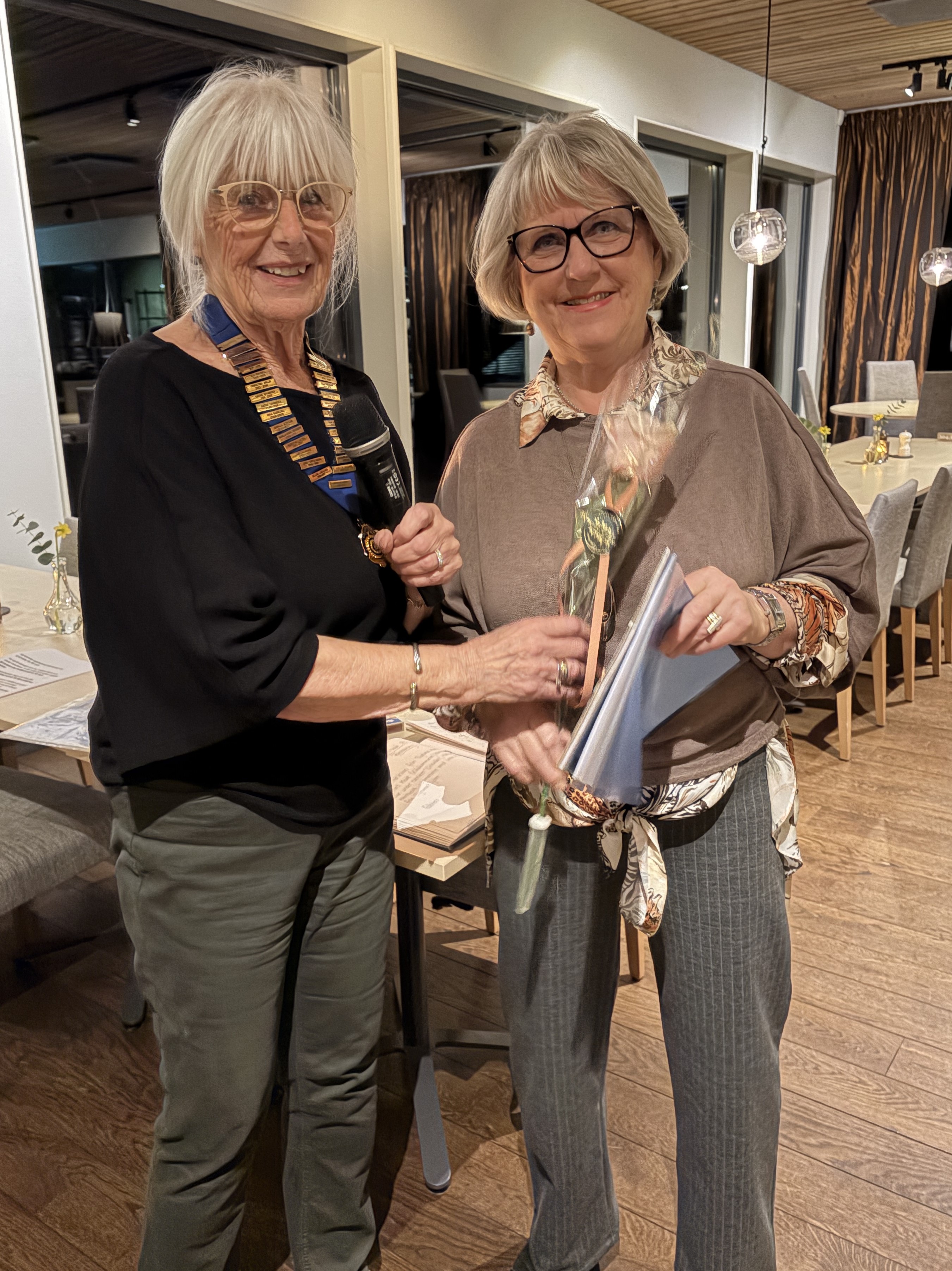 Monika välkomnar Åsa Fernström till vår klubb på månadsmötet den 11 september 2025.
