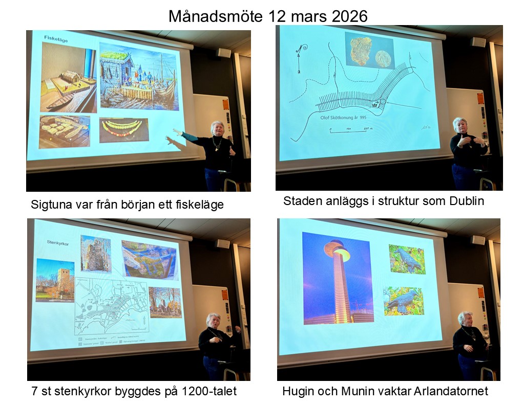 Efter Valmötet kom Ansi Jönsson och höll ett föredrag under rubriken "Sigtuna genom historien, en snabb överblick". Hon är en engagerad profil och guide i Sigtuna och presenterade Sigtunas histora på ett mycket inspirerande sätt.