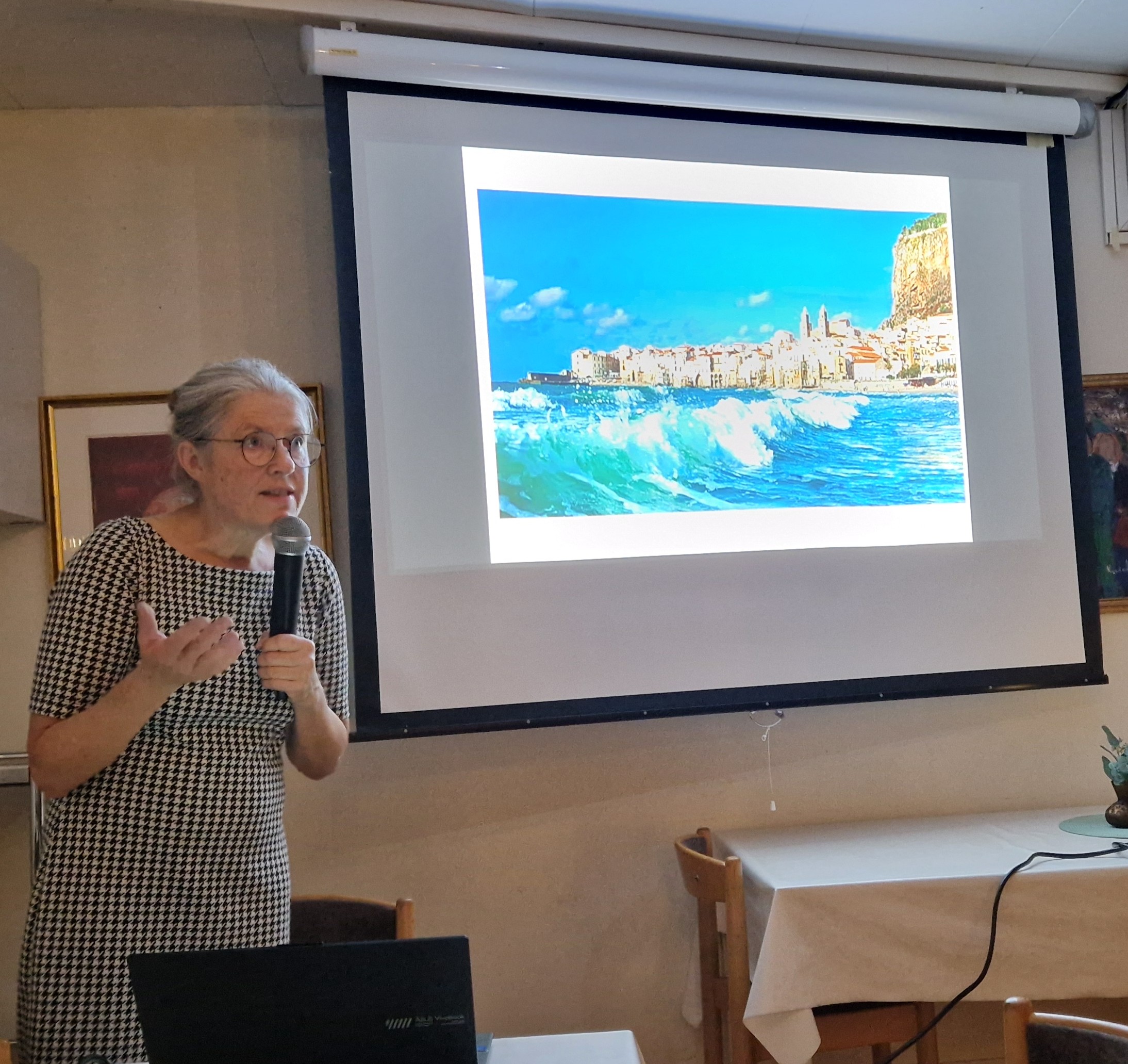 Martinsson som visade bilder och initierat tog oss på en resa genom Italien. Hon berättade bl a att hon hur hon hade det när hon under sin studietid i Rom bodde på ett Benediktinerkloster.